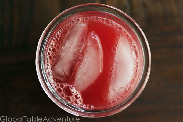 Today’s recipe is inspired by the flavors of Ghana, where heavy watermelons pile up in the markets all summer long. This sweet/tart drink uses up the juicy fruit up quickly – perfect if there’s a lack of refrigeration (or – ahem – if there’s no room in the refrigerator for a half-eaten watermelon). So, scoop up your leftover watermelon for a pitcher of this rosy drink – you’ll be sitting pretty when the mid-summer sun tries to beat you down.