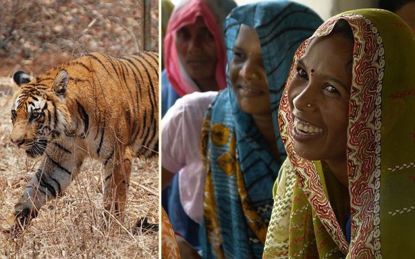 Bengal Tiger, the national animal of India. Photo by Paul Mannix | Indian woman. Photo by Yann