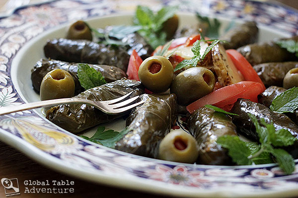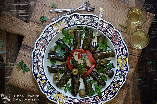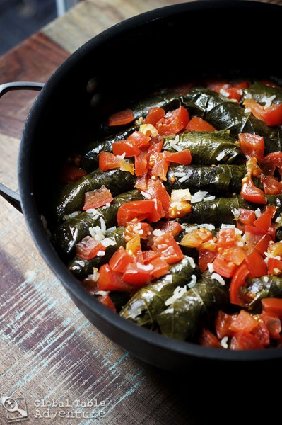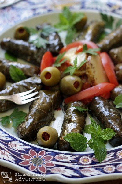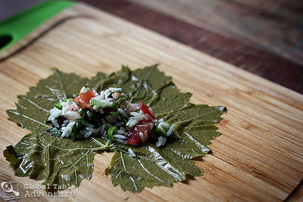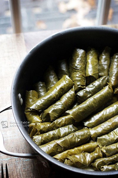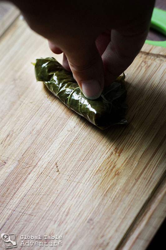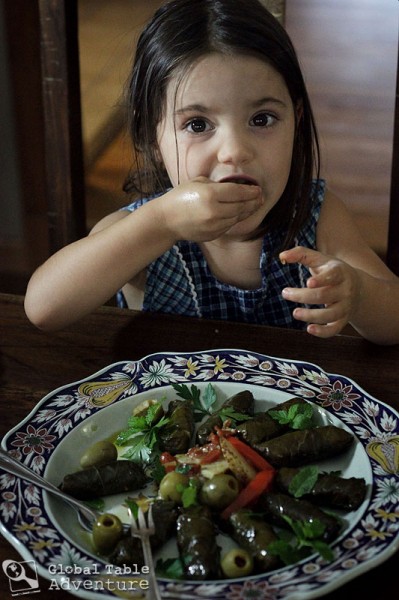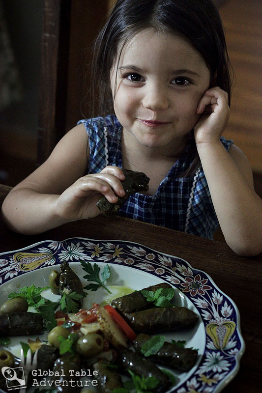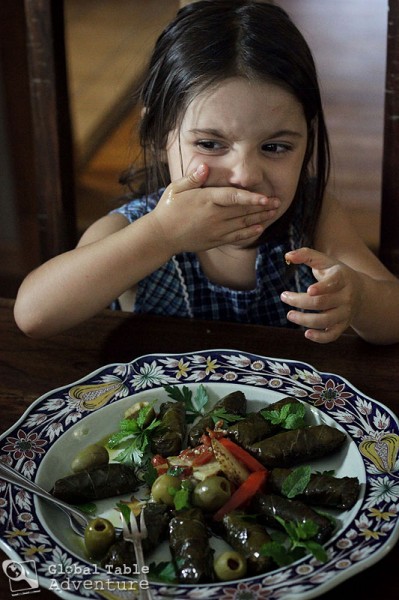 Time and time again I’ve failed to entice Ava with stuffed grape leaves. I tried back when we cooked Armenia, when the grape leaves were laced with an intoxicating blend of cinnamon, allspice and currants and she was an innocent, unquestioning 8-month old. Let’s just say she wasn’t ready – neither for the somewhat chewy outer “skin,” nor the mystery of what was inside. Little kids like to know what mom is feeding them.