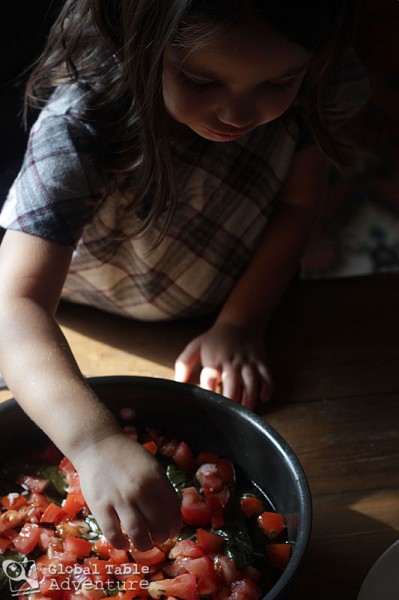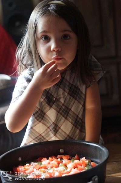 I caught her eating the rice mixture raw. I caught her snagging tomatoes…