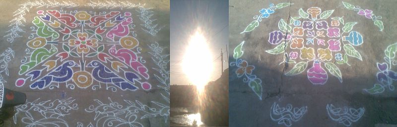 On the morning of Makar Sankranti the whole neighborhood glows brightly with the designs.