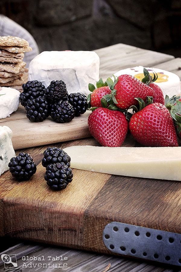 Every cheese platter needs fruit. This is spring and there’s no better time to feature berries. The blackberries are moody and sweet, while the strawberries are blood red and juicy. In a couple of months, both will be pale and watery – get ’em while the gettin’s good!