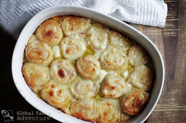 What being a grown up has taught me: There’s no way to turn couch surfing into exercise. I cannot be a mermaid for a day, no matter how hard I will myself to grow a tail. Superman isn’t going to swoop down out of the sky and carry me away with him. Heck, he can’t even find a phone booth these days. That being said, there are lots of good things I’ve learned as a grownup. Making my daughter guffaw makes my heart happy Eating around the table with loved ones is worth a pile of dirty dishes. There are superheroes in every day life, like my husband who quietly shovels our neighbor’s drive when he thinks no one is looking. And now… thanks to the tiny country called San Marino… I’ve finally learned that I can have the best of two worlds: lasagna and cinnamon rolls.  The dish is called Nidi di Rondine, or Swallow’s Nests. Think fresh sheets of pasta spiraled like a cinnamon bun, but layered with bechamel sauce, cheese, and ham …