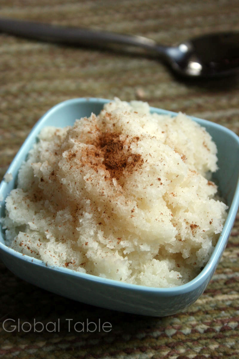 Serves 4-5 Cocada Angolana is an intensely sweet dessert. Make sure to add plenty of cinnamon; the warm spice rounds out the flavor. Ingredients: 1 cup water 2 cups sugar 4 whole cloves 4 cups grated coconut 1 1/2 cups whole milk 1-2 Tbsp cinnamon Method: 1. In a large pot over medium heat, cook water sugar, and cloves. Stir until dissolved. Heat until mixture reaches soft-ball stage on a candy thermometer (about 240F). 2. Using a spoon carefully discard cloves. 3. Add coconut and milk. The mixture will clump. Continue to stir until smooth. Simmer for a few minutes. 4. Spoon into serving dishes and refrigerate at least 30 minutes. 5. Sprinkle with cinnamon. Serve chilled. Coconut Dessert | Cocada Angolana Votes: 0 Rating: 0 You: Rate this recipe! Print Recipe Cocada Angolana is an intensely sweet dessert. Make sure to add plenty of cinnamon; the warm spice rounds out the flavor. CourseSweets Lifestyle5-ingredients or less, Gluten-Free, Vegetarian Servings Prep Time 4-5 People 5 minutes Cook Time Passive Time 10 minutes 30 minutes Servings Prep Time 4-5 People …