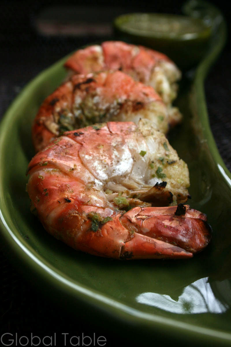 Serves 4 Prawns are a real treat, especially on the grill! For this Angolan appetizer we thawed frozen prawns in some of the marinade overnight (in the refrigerator). This simple step saved us time on meal day. I’m honored that this recipe was featured in Penzy’s Spices’ 2012 early summer catalog. Ingredients: 4-8 prawns 4 cloves garlic, crushed 4 green onions, chopped 1/8 tsp minced habanero 1 tsp cumin 1/8 tsp salt 1/4 cup white wine vinegar 1/4 cup water Method: 1. In a small food processor, combine all ingredients except prawns. Pulse until mixture forms a loose paste. NOTE: This step may be done the day before, just cover and refrigerate. The habanero will get stronger overnight as its hot oils mix more with the other ingredients. Depending on the habanero, this recipe is fairly mild. 2. Brush prawns with about 1/3 of the marinade, reserving the rest for dipping. If prawns are frozen, thaw completely. 3. Grill prawns about 3 minutes per side or until no longer translucent. Serve immediately with dipping sauce on the side. Grilled Prawns with Peppers | Camarao Grelhado Piri …