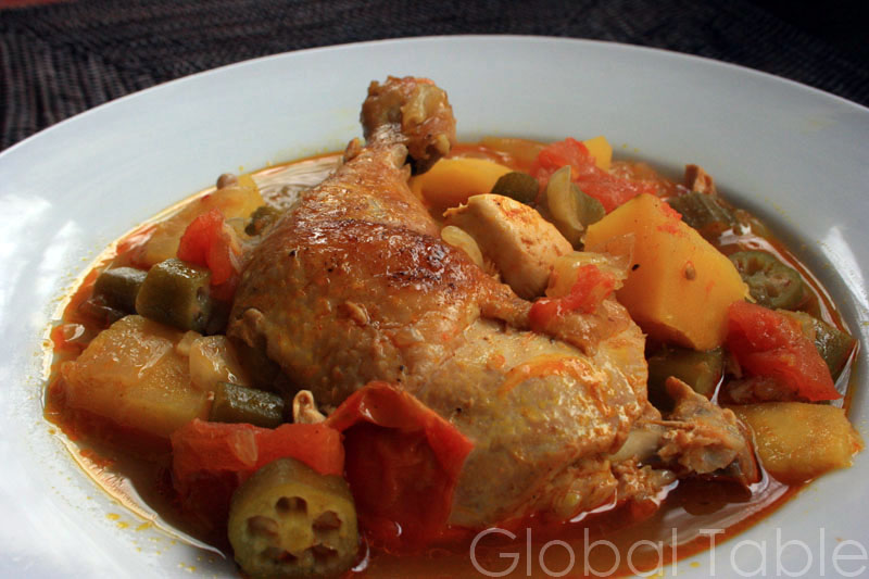 Serves 4 Muamba de Galinha gets its unique flavor from Red Palm Oil. This spicy stew tastes great with yuca, or serve over rice. Ingredients: 1 lemon, juiced 4 garlic cloves, crushed 1/2 tsp salt 1 1/2 tsp chili powder 1 chicken cut into quarters 1/2 cup red palm oil 3 onions, diced 1 whole chili pepper 3 tomatoes, quartered 1 lb pumpkin cut into 1.5″ cubes 1 cup chicken broth 1/2 lb frozen okra Method: 1. Mix lemon juice, 2 garlic cloves, salt, and chili powder and rub on the chicken and marinate for one hour (or up to one night). 2. In a large pot heat oil. Brown chicken on all sides. Avoid crowding. Do this is in several batches if you have to. 3. Add onions, remaining garlic, chili pepper, and tomatoes. Bring to a simmer and cover. 5. Cook on low for about 1 hour, or until chicken is tender. 6. Add squash, chicken stock and okra. Cook for 15 minutes or until everything is tender. Serve hot. Angolan Chicken Stew | Muamba de Galinha Votes: 1 Rating: 4 You: …