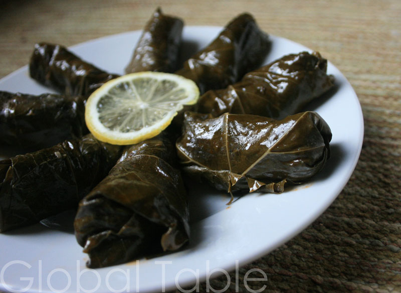 Serves 4-8 (makes 20) This is a delicious variation on traditional stuffed grape leaves we see in supermarket salad bars. The Armenians make stuffed grape leaves without an intense vinegar brine. Instead, earthy cinnamon and currants carry the flavor. Just wonderful! Ingredients: 1 16 oz jar grape leaves 6 Tbsp olive oil 1 onion, diced (about a cup) 1/2 cup basmati rice 2 Tbsp tomato paste 3 Tbsp dried currants 1 Tbsp lemon juice 3/4 cup water salt 1/4 cup pine nuts 1/2 tsp sugar 1/2 tsp ground allspice 1/2 tsp ground cinnamon 4 Tbsp chopped fresh parsley Method: 1. Saute onion in olive oil in a large skillet over medium heat. After they begin to turn golden about 5 minutes), add rice, tomato paste, currants, and lemon juice. Cook for one minute longer. NOTE: Currants are like tiny raisins: 2. Add water and salt and bring to a boil. Reduce to a simmer and cover. Cook until just cooked, about 15 minutes. 3. Turn off heat. Add pine nuts, sugar, allspice, cinnamon, and parsley. 4. Stuff leaves …