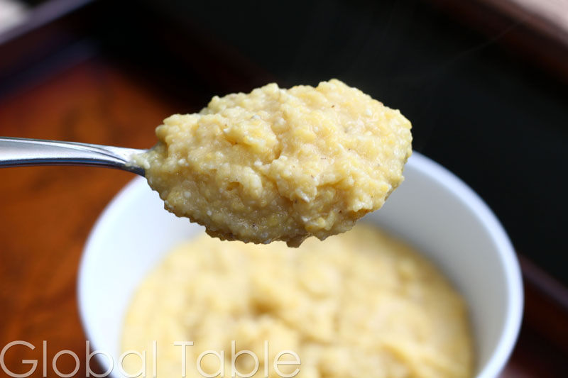 Serves 2-4 In Botswana, Cornmeal Pap is eaten with the fingers, dipped into stews to pick up additional flavor. Like soft polenta, Cornmeal Pap goes well with any stewed meat or vegetable. The mixture stiffens up quickly, however, so serve immediately after cooking. NOTE: Please use white cornmeal for authentic pap. (I had to substitute yellow) Ingredients: 1 cup cornmeal (fine or medium grind is best) 1 quart broth (vegetable, chicken, or beef) salt pepper Method: 1. In a medium pot, bring stock to a boil. 2. Stream in cornmeal slowly. Whisk continually to keep mixture from lumping. 3. As mixture thickens, you may need to switch to a wooden spoon. Allow to simmer gently until cooked to desired consistency, about 20 minutes. Season with salt and pepper. Serve immediately (Pap stiffens up considerably as it cools). Cornmeal Pap Votes: 0 Rating: 0 You: Rate this recipe! Print Recipe In Botswana, Cornmeal Pap is eaten with the fingers, dipped into stews to pick up additional flavor. Like soft polenta, Cornmeal Pap goes well with any stewed …