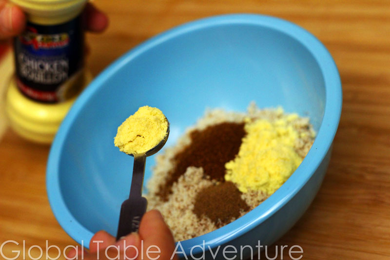 Makes about 1/2 cup This is my own version of the jarred Kan Kan Kan spice blend popular in Burkina Faso. The raw peanut powder offers a slight grassy flavor, dominated by heat from the chili powder and saltiness from the bouillon. Try with our Grilled Lamb Brochettes. While the jarred stuff alleges to be an aphrodisiac, I happened upon the description of this spice blend on an expat blog which – unfortunately -I can no longer track down. I mixed it together to taste. If you want the aphrodisiac, you’ll want to add a lot more ingredients, like ginger, mustard seed, and cinnamon. NOTE: Peanut powder and Maggi cubes can be found at African markets. I went to Tulsa’s local Tropical market. Ingredients: 1/2 cup peanut powder 1 tsp chili powder 1/4 tsp allspice 2 Maggi bouillon cubes or 2 tsp powdered bouillon Method: Take all ingredients and mix together in a small bowl. If you use maggi cubes, crush them with the back of the spoon. If, like me, you accidentally buy SHRIMP flavored …