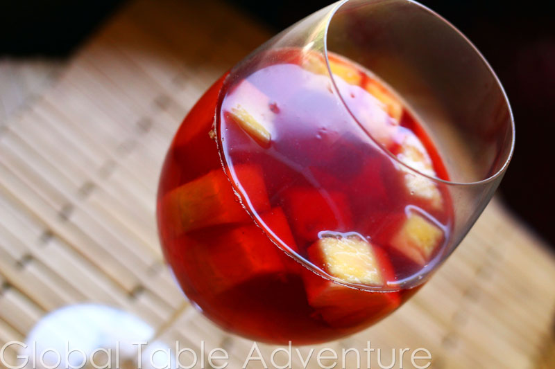 Makes 1.75 liters (plus the pineapple) Chilled hibiscus tea is light and refreshing. The natural floral tang is a wonderful counterpart to sweet pineapple chunks. Kids will love fishing out the fruit in this totally and wonderfully decaffeinated iced tea. VARIATION: Some recipes call for equal parts lemonade to hibiscus tea. We tried this “pink lemonade” and loved it! Ingredients: small handful hibiscus flowers (or 4 teabags) 6 cups boiling water 4 cups ice 1 pineapple, cubed Method: 1. Pour boiling water over hibiscus flowers or teabags. Let steep about 30 minutes. Hibiscus puts on a wonderful show as the purplish dried leaves turn the water vivid red. Strain into ice to speed up cooling. Trust me, you won’t want to wait any longer than you have to! Serve chilled with chunks of pineapple. I made my chunks large. I couldn’t help it. This was the sweetest pineapple I’ve had in a long time. Yum! Cheers! I hope you the last bit of your summer is splendid! Iced Hibiscus Drink with Fresh Pineapple | Bissap …