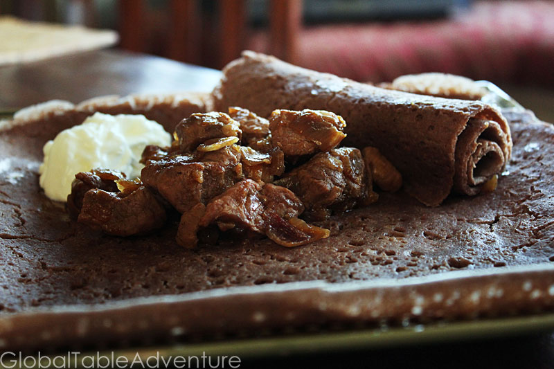 One of Miss Ava’s friends, Tilda, is from Ethiopia. While she’s not exactly talking yet (she turned one in December), her parents are talking and everything they’ve said about Ethiopia makes me hungry. They adopted Tilda last year and spent some time in the country getting to know the culture and, of course, the food. Here’s the summary: if you’re into spices, you’re in luck. They brought back bags of berberé seasoning – so much, in fact, that they didn’t think twice about giving me an entire cup of their precious stash. Almost everything is spiced with berberé seasoning [Recipe], especially the standard wat (stew) made from lamb [Recipe], chicken, lentils, or beans. Be sure to enjoy Wat with Injera [Recipe], teff pancakes that are used to scoop up the food instead of silverware. Now, for something that Tilda’s parents did not tell me – I got this little nugget from Andrew Zimmern. In his Ethiopian episode he shares that if you’re really lucky Ethiopians will offer you raw meat. Raw meat is a delicacy – the fresher …