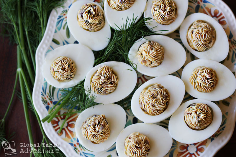 Once, when I was in my first decade of life, I stared at a platter of chilled, “eyeball eggs,” as I called them, and vowed to never, ever eat one. A temper tantrum may, or may not have been involved. Now, two decades later, here I am, on the other side of the fence, albeit somewhat mystified how it came to be that I now scan buffets for the little suckers. I think the name says it all; like the neighborhood bad boy, the deviled egg is a love-it or hate-it treat. And, as with wine and coffee, appreciation almost always comes later in life. Unless… you live in Lithuania. There, eggs are as adored as apples, and more so on a cold buffet with additives like fish or mushrooms – the stinkier the better. For this week’s Global Table, I made a Lithuanian-inspired Deviled Egg, complete with fried mushrooms, dill, and sour cream. Why mushrooms? As one Lithuanian reader noted, “Mushroom foraging is like a sport in Lithuania (especially in the South) and I …