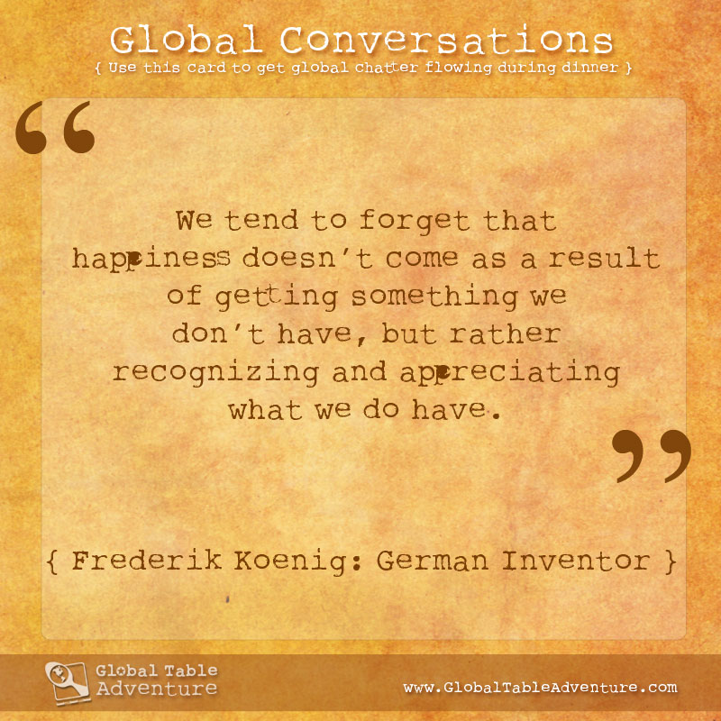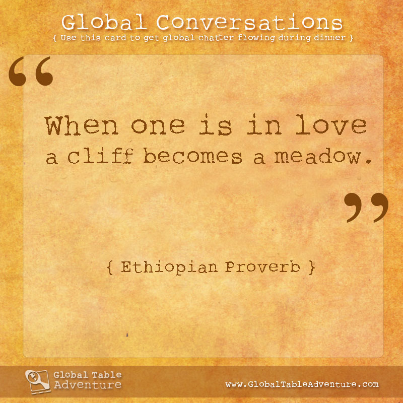 For those of you eating the world right along with me, or those of you just looking to liven up dinnertime, get the conversation flowing with these “Global Conversations” – inspiring and fun quotes from around the world. They’ll get everyone thinking and talking! Enjoy! xo Sasha