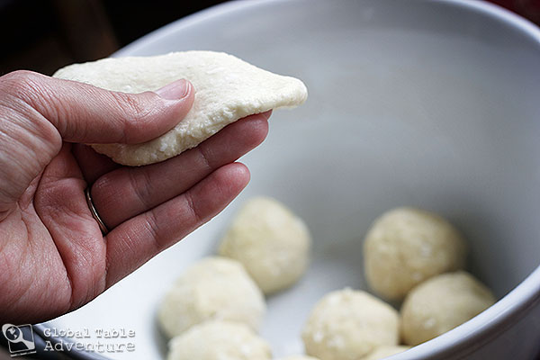 - When you’re ready to cook, flatten each ball of dough with the palm of your hands to form discs.