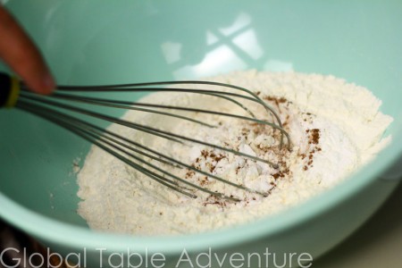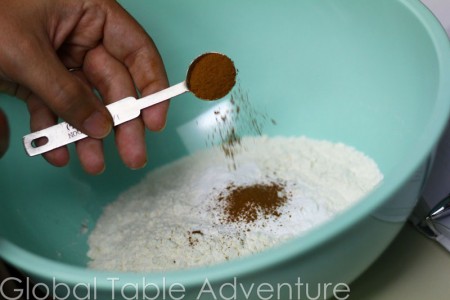 1. In a large bowl mix together flour, baking powder, cinnamon, and salt.
