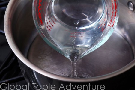 Add water to a pot… make it a wide one. You’ll see why in a few pictures.