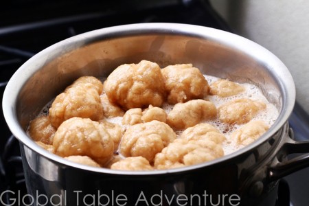 2. Add balls of dough and simmer until cooked through - about 20 minutes