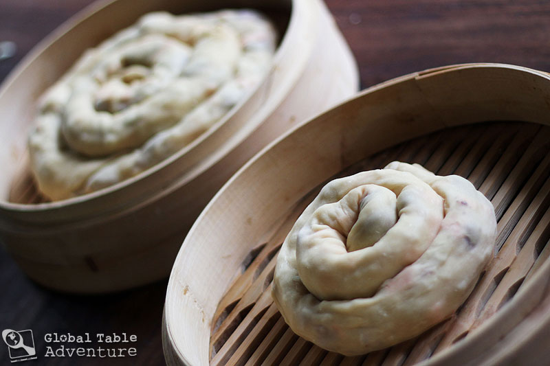 Notes: before you get started on this little journey you’ll need a steamer, preferably metal but bamboo will do just fine. Recipe inspired by National Cuisines of Kyrgyzstan, where the recipe is said to be shaped like a swiss roll which is then bent back on itself into a circle. This recipe is my interpretation of these directions.