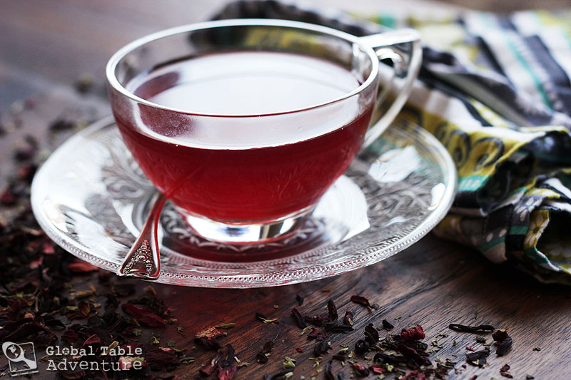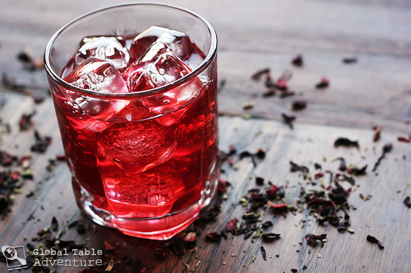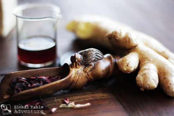 During these calm evenings, I almost always want hot tea although sometimes – in the sweaty heat of Oklahoma summers, I crave a tall glass of cold tea outside, in the warm evening breeze. Today’s recipe for bissap enjoyed in Mali (and west Africa in general), easily satisfies both those cravings. Whether hot or cold, the flavor is bright, fruity, with a punch of ginger smoothed out by a slinky splash of vanilla.