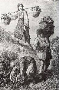 Engraving of a Harvest in the Valley of the Roses, 1870, Felix P. Kanitz