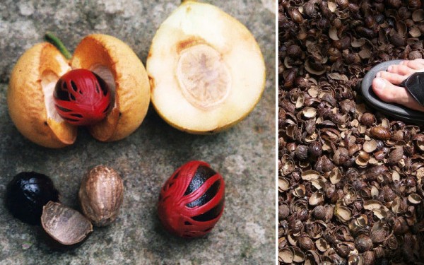 Then, once you break open the hard casing, there’s the most floral fragrant goodness your nose (and mouth) have ever sniffed (and tasted). This is nutmeg, the spice we so affectionately use in grandma’s apple pie and in recipes like homemade nutmeg ice cream. If you think that’s sweet, think again. Too much can make your tongue go numb, or even kill you.
