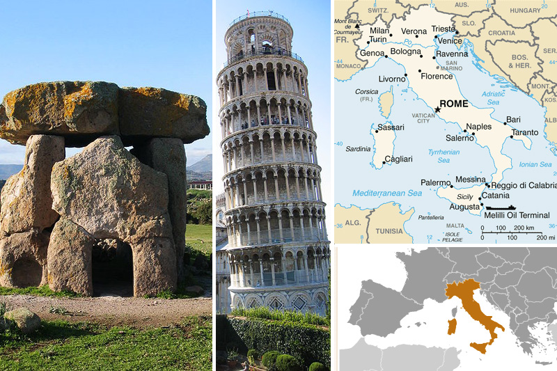 Mores, Sardegna, Italy. Photo by Zagor Demores | Pisa Tower. Photo by Johann H. Addicks | Maps courtesy CIA World Factbook.