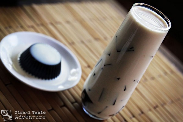 Nothing – I’d like to try it in a milk shake next. Also, be sure to drink it with an extra wide straw, available at Asian markets (I’m not sure the jello would slurp up a small straw as well).