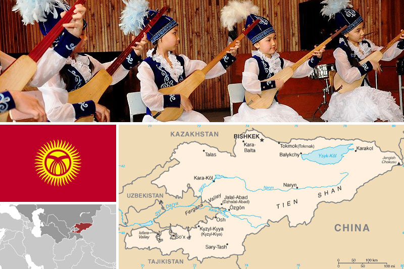 Maps and flag courtesy of CIA World Factbook. Children playing the "Komuz" by Nichelle Anderson.