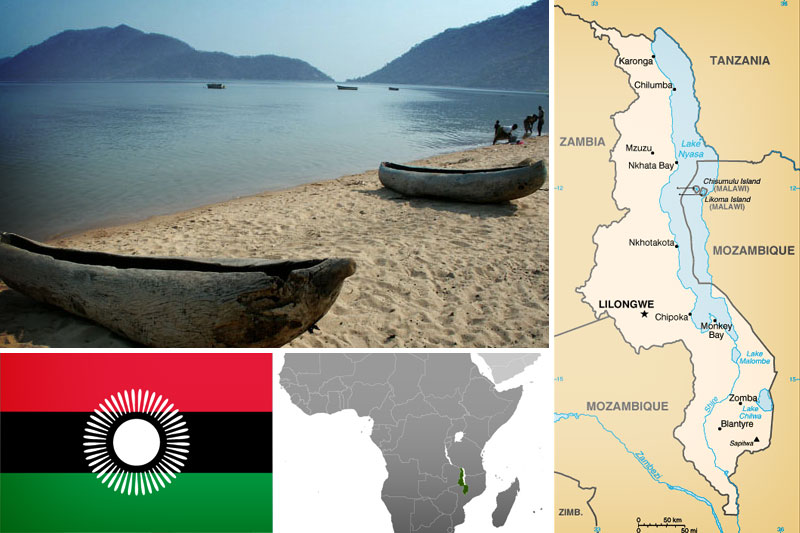 Maps & flag courtesy of CIA World Factbook. Monoxylon beach, Lake Malawi - photo by Stefan Kraft.