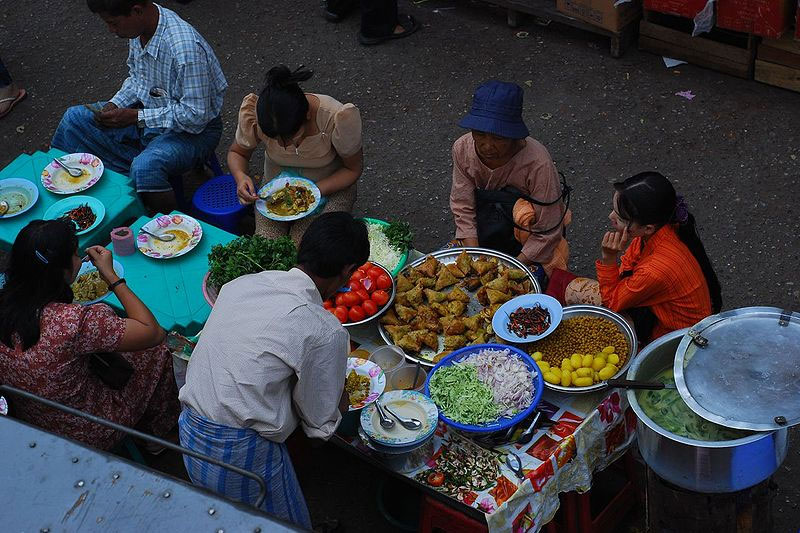 Speaking of chickpeas, there’s a notable Indian influence in Myanmar. Not only are spicy curries, tamarind juice, and flatbreads common (nan pya), but food is typically enjoyed layered with steamed rice.
