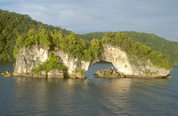 From overhead she looks less like an island, and more like mossy bumps of land popping up from the ocean. A closer look reveals bridges snaking across these bumps and puffs of island, as well as stones carved out by the sea that, ironically, look like bridges themselves. Trees also overhang the turquoise waters – shading places with names like “Jellyfish lake.”