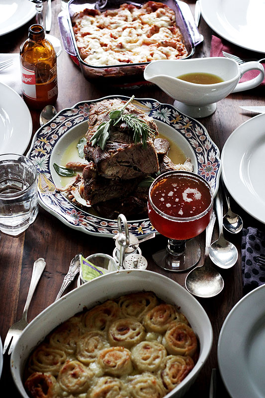 None of us had ever had pork braised in milk and it was so great! The pork become tantalizingly tender and really absorbed the flavor of the rosemary and sage leaves. I forgot to share the “curds” which form while roasting during dinner, but I tried them later and they are a totally amazing treat. It’s like eating fresh, homemade herb-infused cheese. Actually, that’s exactly what it is. Amazing. I’m so sorry I forgot to offer this to our neighbors!