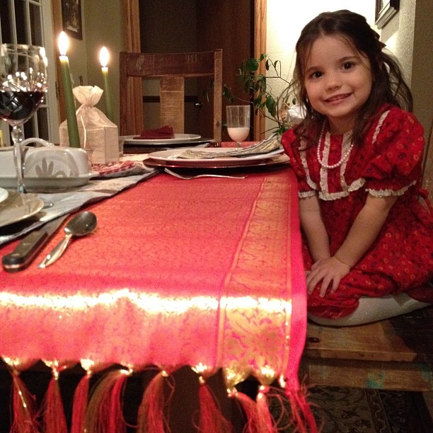 Moments before our big dinner on December 24th (Ava wearing a dress I wore when I was 4). The “Empty Present” between the candles is a tradition I started a few years ago, where we pass the empty gift to each other while stating what gift for the heart we are offering to each person – a promise for the year to come.