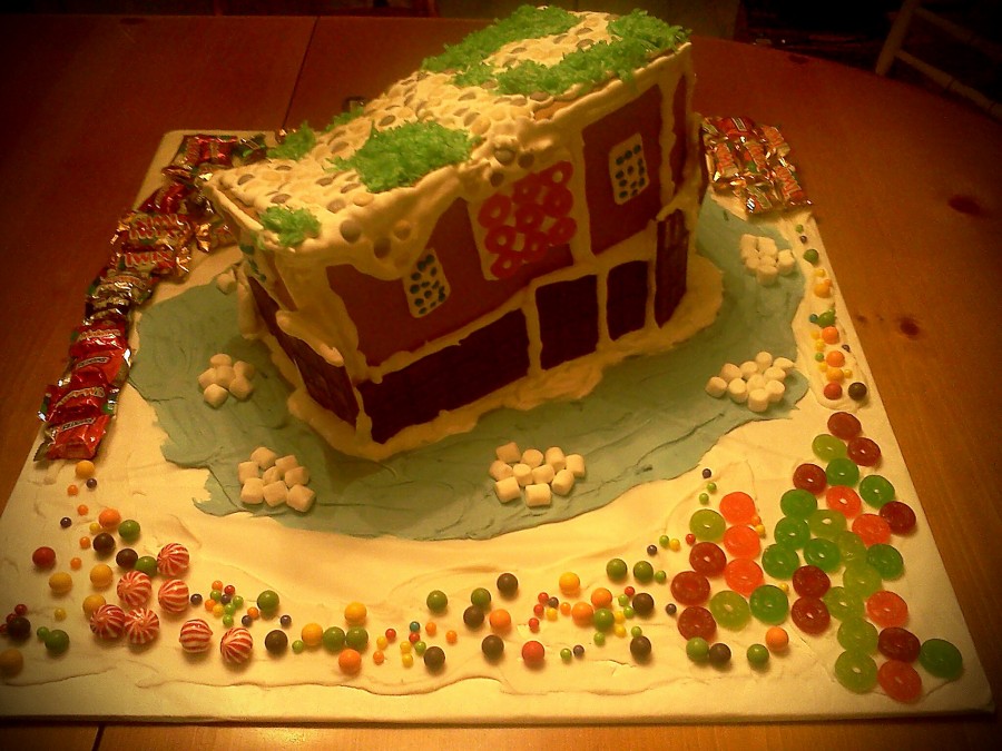 When I originally looked for inspiration for this project my plan was to find a Polish cottage and replicate it as a fun way to learn more about my heritage. However, when I found the Upside Down house by Daniel Czapiewski I was won over by the message of the house/ artistic exhibit in Szymbark, Poland. The Upside Down House was designed to be a reminder of the need to pay attention as the world changes around you because if you don’t one day you’ll find your world has been turned upside down (as was the result with communism in Szymbark, Poland). I brought this gingerbread house to two Christmas parties in one night, and it got a lot of attention. I enjoyed explaining the inspiration for this gingerbread house to all of my friends. Besides being yummy it was educational and positive.