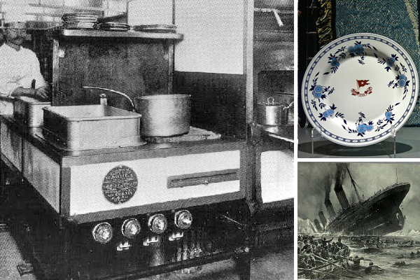 A huge staff labored almost continuously in Titanic’s massive galleys to prepare more than 6,000 meals a day. The main galley, which churned out food for first- and second-class passengers, featured serving pantries; a butcher shop; a bakery; vegetable kitchens; specialized rooms for silver and china; rooms for wines, beer and oysters; and huge storage bins for the tons of coal needed to fuel the 19 ovens, cooking tops, ranges and roasters. (History)