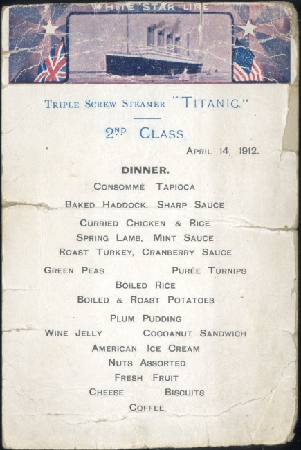 Sample 2nd Class menu from the Titanic. Source.