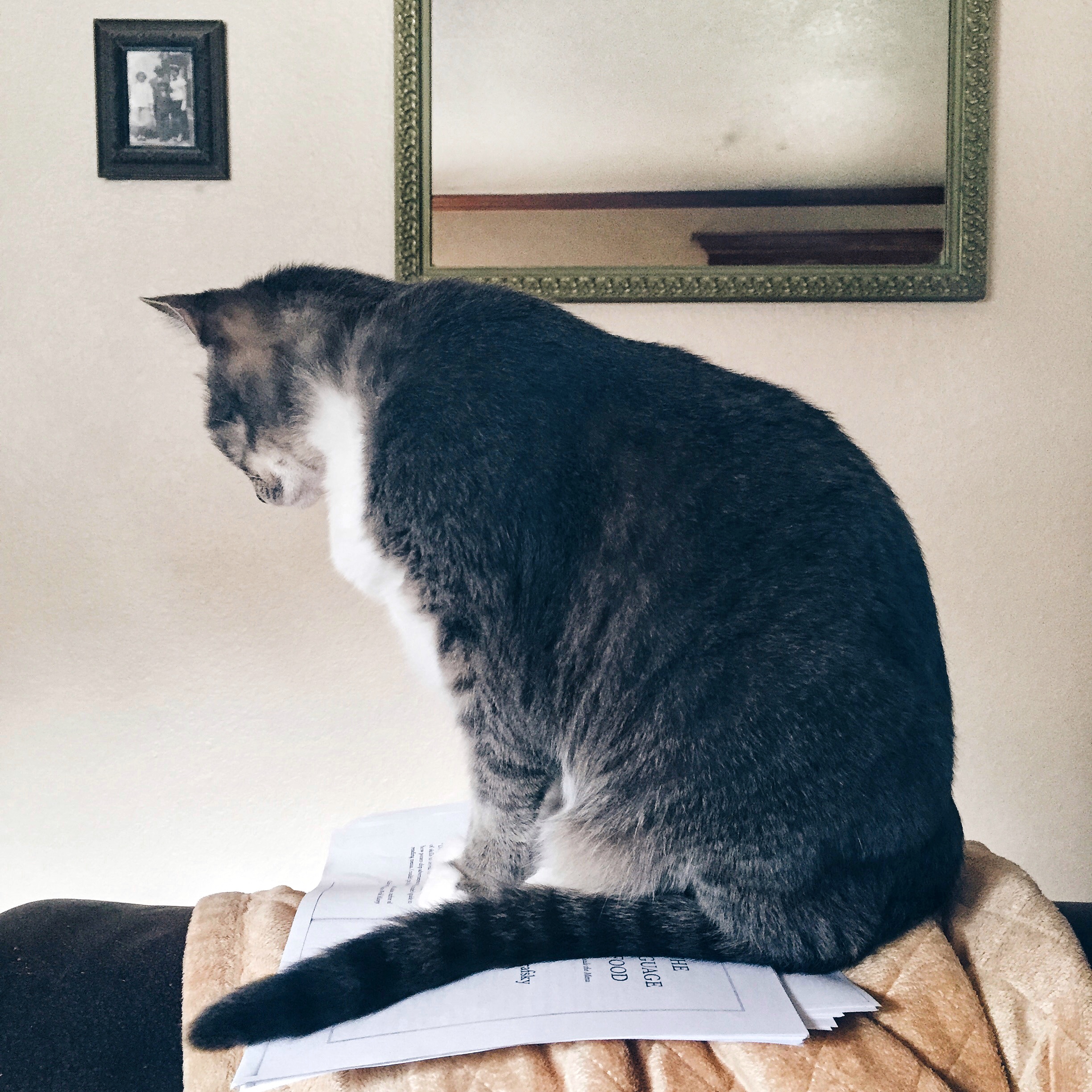 This is my cat, Malky. Sitting on my homework.