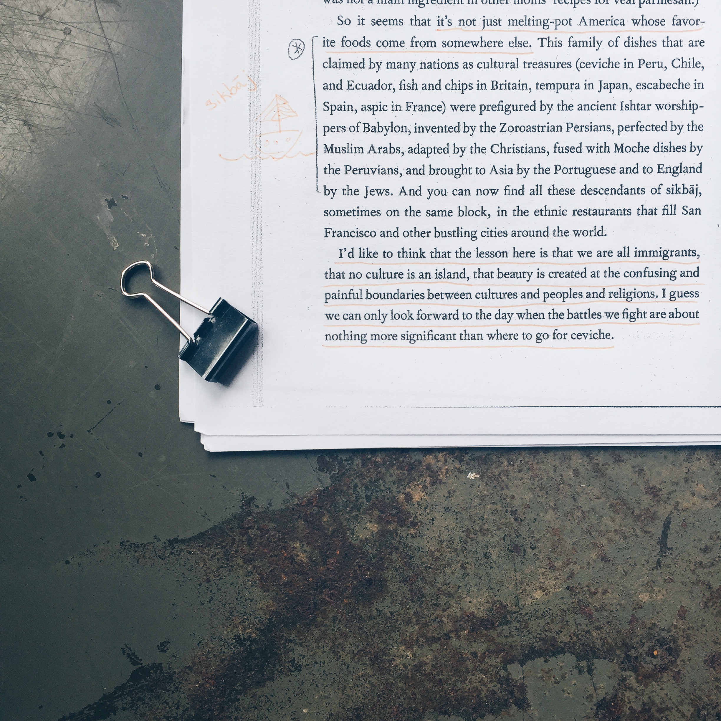 ![Quote from Dan Jurafsky from "The Language of Food" | "So it seems that it's not just melting-pot America whose favorite foods come from somewhere else [...]. I'd like to think that the lesson here is that we're all immigrants, that no culture is an island, that beauty is created at the confusing and painful boundaries between cultures and peoples and religions. I guess we can only look forward to the day when the battles we fight are about nothing more significant than where to go for ceviche."](http://natural-way.today/wp-content/uploads/2016/08/food-fellowship2.jpg)