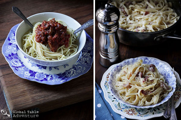 Ava is the first to tell me what should be dinner. Even growing up with this Global Table Adventure since she was 7 months old, Ava asks for the same thing night after night: noodles. (Interestingly, her second most common request is avocado sushi). This week I got to tell her yes to noodles. Twice. There’s nothing wrong with carb-loading, right? Especially when eating the Vatican… right? I doubled up on pasta so I can share two amazing sauce recipes with you. One I learned from my distant cousin Alfred, another I learned this week thanks to a Pope!    The Pope’s Fettuccine | Fettuccine alla Papalina [Recipe] A simple pasta dish invented in the late 1930’s for Pope Pius XII, made with softened onion, prosciutto, a swirl of cream, plenty of good quality parmesan, and as many twists of fresh ground pepper as you can handle. Cousin Alfred’s Meat Sauce [Recipe] Ground beef, sweet Italian sausages, rich mushrooms, and the best Italian tomatoes around. This is the sauce to end all sauces, perfect ladled onto …