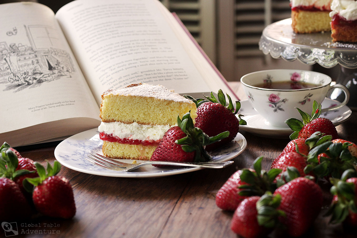 Imagine a cake good enough to eat upside down. This Victoria Sponge Cake is 100% inspired by Mary Poppins – that lovable British nanny at the heart of countless quirky adventures – and, yes, it’s that good. The recipe is mentioned in Mary Poppins: 80th Anniversary Collection, which I gave my daughter for Valentine’s Day. A note on these books: P.L. Travers’s collection goes well beyond the parameters of the Disney movie – the floating tea party scene at the heart of the film can be found on page 42, barely cracking the spine of this 1024 page classic. Every night at bedtime we settle into a new chapter, following the 5 Banks children on another adventure. They paint the sky, eat gingerbread stars, hang out with the constellations at a circus in space, and travel the world with a compass – and all that within the first few hundred pages. Mary Poppins not only never explains their adventures once they’re over, she insists she has no idea what the children are talking about. More than buttoned up, Mary Poppins is flat out strict, yet the children always have fun when she’s …