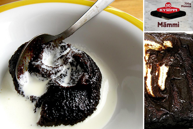 Finns greet Easter with a goopy, black as tar dish called mämmi. If that’s not enough to entice you, let me see if I can adequately describe the flavor. It’s been described as a cross between Guinness and shoe paste. Even with such a distinct look and taste, mämmi is a tradition held seriously enough to warrant protection from the European Union. Making mämmi is no joke – first you mix rye flour with bitter orange peel, a hint of sweetener, and a few other ingredients. Boiling water gets mixed in and you slowly bake it in a warm oven. Slowly… as in for three hours. Then it has to be whipped until cool. Then it has to sit for a few days. I think there’s some repetition of steps in there somewhere. Finally, and most commonly, it gets served with a splash of cream and a bit of sugar. Phew. If grandma goes to the trouble to make you a batch of mämmi, you had better eat it with a smile – goup and …