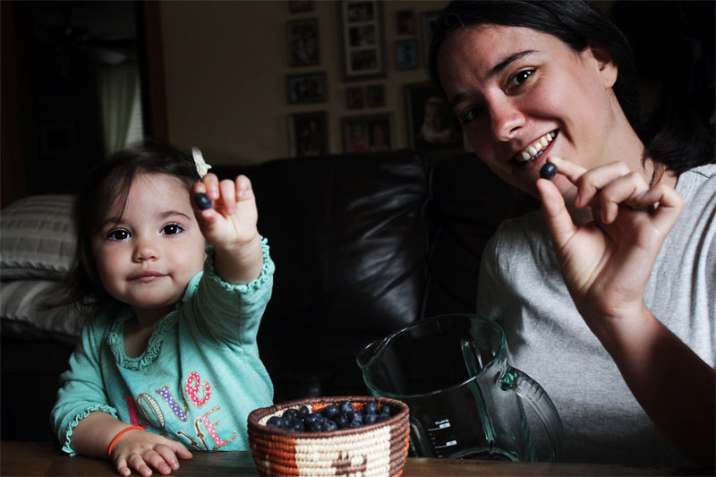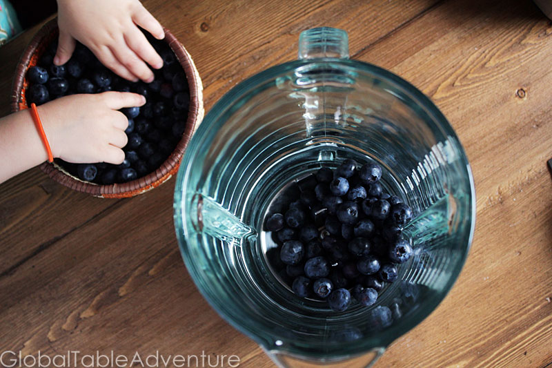 Makes about 1 1/2 quarts The Finns are a healthy bunch. Between foraging for berries and milking cows, it is no wonder that they also enjoy slurping blueberry milk – an antioxidant rich powerhouse of a drink. Not to mention – it’s blue – an underutilized color in cooking. Pretty cool in my book. This recipe is adapted from The Best of Finnish Cooking. They used half as much milk than I did – which would make a thicker and much bluer mixture. Play around and see what works for you. Ingredients: 1 pint blueberries 1 quart milk 1-3 Tbsp sugar 1-2 cups ice Method: If you have the time, I highly recommend milking a cow for this recipe. There weren’t any available this weekend, so I had to use the old standby – supermarket cow. Whole milk is best. Borrow a small child to help make this recipe. Miss Ava ate more blueberries than she added to the blender, so – if you do – be sure to buy extra. Splash on the milk. …