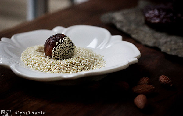 “Oh yeah…” Keith says, chewing thoughtfully. “These are good!” I look at him a moment, scanning his eyes, wondering if he is being truthful. Then I look down at the plate to check if he’d eaten the right thing. Sesame coated, almond stuffed dates. Yup. Could he really think the Stuffed Date Balls are good? To be fair, he had no idea what they were when he ate them, except I did warn him that the crunchy thing inside was an almond. Still, these date balls seem more challenging to me than sushi, more challenging that the raw beef soup for Laos, more challenging than the frankincense ice cream. More challenging for me, at least. We all have our difficulties when it comes to certain textures and flavors. And dates have always been mine. Could it be that we project our fears onto our friends and families, expecting them to react the same way we will? If so, no one has a chance. The favorites have been decided before anyone takes a bite. The funny thing? …