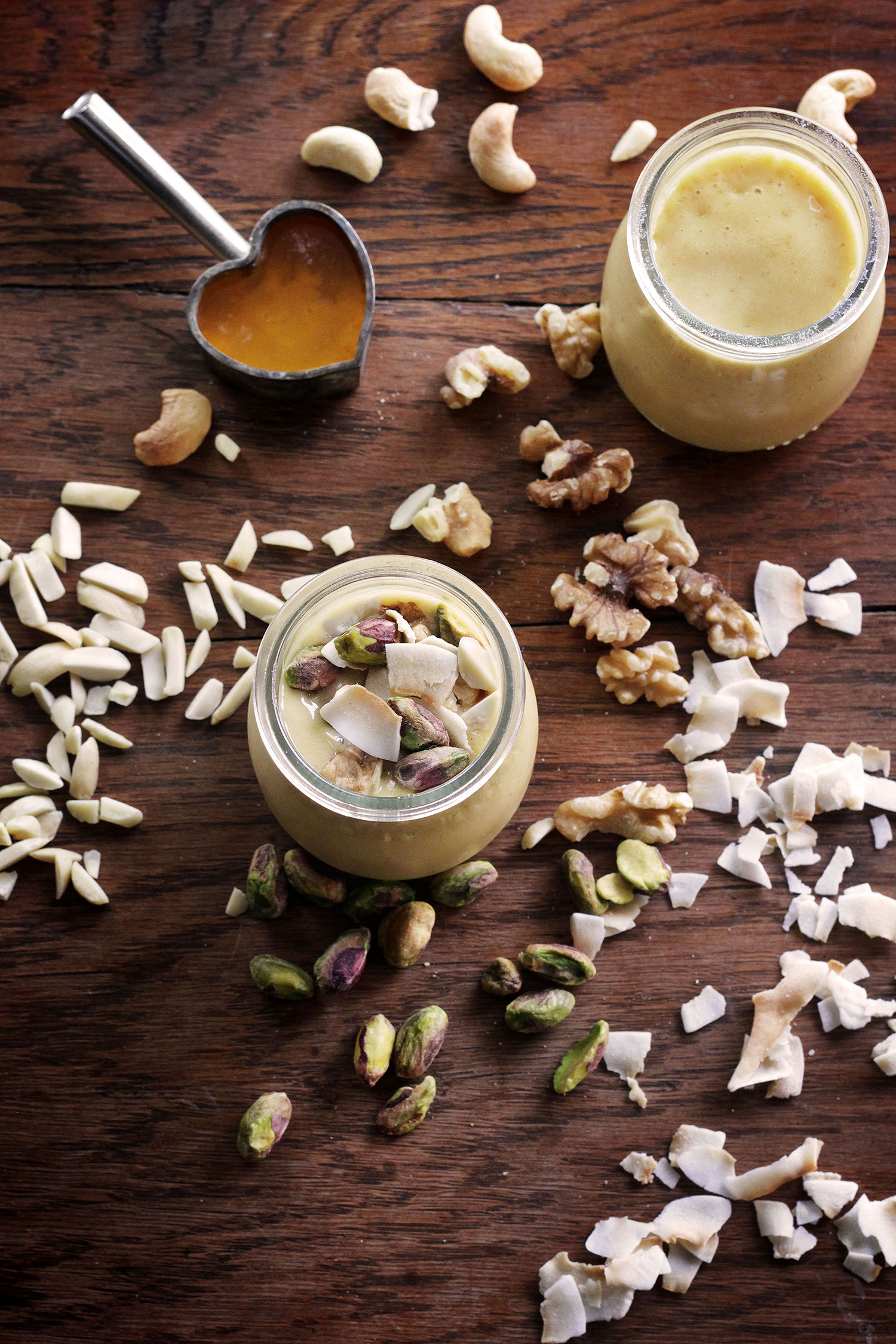 How do you know it’s springtime in Yemen? So much of Yemen is dusty: sand overwhelms the northern stretches in an area called “Rub’ al Khali” or the “Empty Quarter”; even ancient skyscrapers are made of sun-baked mud, as can be found in the town of Shibam. But… like a mirage, there’s another, glimmering view of Yemen. Between the dusty cliffs of the Hadramout desert lies a valley of prickly trees and honey bees, where one of the world’s great aphrodisiacs accumulates in golden pools. This is Sidr Honey, a.k.a. jujube honey. Every year, semi-nomadic beekeepers flock to the Do’an Valley, where the sweet fragrance of the jujube tree sets the bees into motion. The resulting honey is said to be a tremendous aphrodisiac. And what do you do with an aphrodisiac? You drink it, of course. Honeymoon Smoothie عصير المتزوجين is a love potion of sorts – a honey-laced smoothie meant to sweeten marriage and to help single folks find true love. I call it a “honeymoon smoothie,” though I read that the literal translation is “married couples juice.” Inside you’ll find everything …
