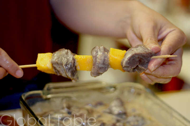 Serves 10 The longer kangaroo ages, the stronger the flavor. If you like less gamey meat, purchase frozen kangaroo. To keep the meat moist and tender, marinate overnight and don’t cook too long. This recipe produced meat that tasted a lot like steak (to me). Ingredients: 2.5 pounds kangaroo loin, cut into 1″ cubes skewers – about 20 1 large mango 1/2 pineapple cubed or pineapple tidbits Mango marinade: 1/2 cup whole milk yogurt 1 cup mango juice 2 garlic cloves, crushed 1 tsp salt 1/2 tsp black pepper Pineapple marinade: 1/2 cup whole milk yogurt 1 cup pineapple juice 2 garlic cloves, crushed 1 tsp salt 1/2 tsp black pepper Method: 1. Divide kangaroo between 2 containers. I made more mango than pineapple, but you can do whatever works for your family. 2. Make the two marinades. Add one marinade to each container. Stir to combine. Cover and refrigerate overnight or for about 8 hours. 3. Soak wooden skewers a few hours before grilling for as long as you want but at least an …