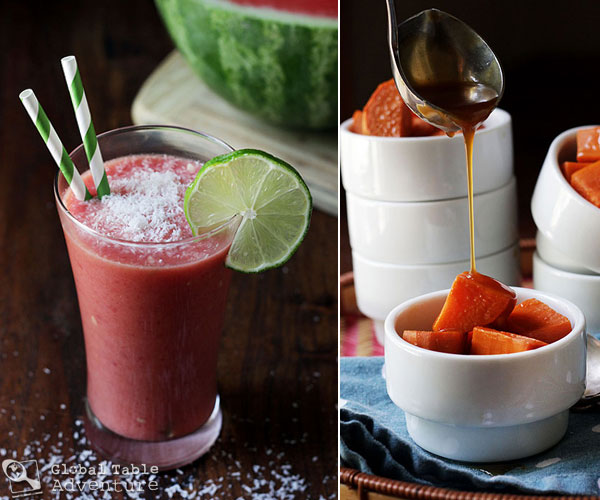 Apparently the fine people of Tonga have quite the sweet tooth. Whether it’s the coconut caramel sauce (which they put on everything from boiled taro to dumplings), or the watermelon chiller, Tonga serves up sweetness in all they do. I for one can appreciate the natural sweetness, especially in the drink. Try the sweet potatoes as a snack or on the side of grilled meats. The drink is great any time of day, but is a perfect alternative to punch or lemonade at your next gathering. Oh, and, yay for an accidentally vegan menu. Because… why not? All recipes and the meal review will be posted throughout the week. Sweet Potatoes in Coconut Caramel Sauce [Recipe] Gussy up your candied sweet potatoes like they do in Tonga -with a totally vegan coconut caramel sauce and a dusting of shredded coconut. Pretty and easy! Coconut Watermelon Refresher | ‘Otai [Recipe] Mashed watermelon blended with coconut milk and shredded coconut. Don’t forget the twist of lime! P.S. As you enjoy your meal, consider sharing the Tongan greeting, which is …