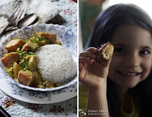 Ever wonder how an island nation forms? There’s an old Tuvaluan legend  that claims the first inhabitants of Tuvalu were ladies named Pai and Vau. Pai and Vau held baskets of sand. The grains that fell out of those baskets are said to have formed the neighboring atolls (the tiny coral reef islands we learned about yesterday). I love this image. It really goes to show how a little carelessness – something as small as a slip of a basket – can have far-reaching effects. Of course, all this island-making leaves me wondering: what did Pai and Vau ate after making the islands? I’d like to imagine, something like this week’s menu… We’re celebrating the food of Tuvalu with a big bite of local Tuna and doughnut-like banana fritters. This is comfort food, meant to be enjoyed with the salt of the sea on your lips, and a smile in your heart. Even more, we have it on authority that the dessert is fit for the prince of England and his bride. So, it stands …