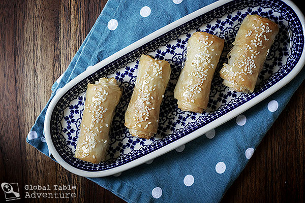 Every wedding, every baby shower, every birthday… every party… needs a smile. And by that, I mean, something that is delectable, not just to the spirit, but to the heart. Perhaps it’s an epic DJ known for Bollywood Dancing. Or perhaps it’s something as simple as a platter of Tunisian cigars, filled with crushed almonds, honey, orange blossom water, and cinnamon…Oh, and there’s a fair kiss of melted butter on them, too. These cigars are rather like baklava, but the orange blossom water makes them more floral, in a dreamy sort of way. The sticky, sweet mixture is guaranteed to get you and your guests licking their fingers. There will be murmurs and smiles. “What is that,” they’ll ask. And you know they’ll be talking about the orange blossom water. So fragrant, yet so delicate. Around the world, the word “samsa” is used to describe many, many different filled pastries, from meats to sweets. In Tunisia these are samsa. Every, last, glistening morsel is yours for the taking. Important note: Thaw the filo dough according to package instructions before …