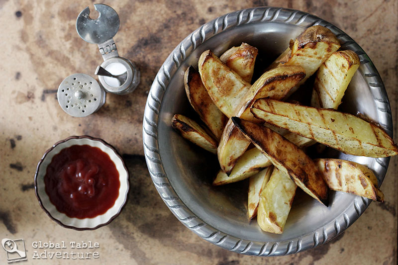 Ok. So even in the summer I crave french fries. But I don’t crave heating up a big pot of oil inside the house. There’s a solution: grilled fries. The fine people of Nauru love their fries. While most of them enjoy deep-fried fries, we covered that with Belgium Pommes Frites. So, inspired by their island setting – where the fine people of Nauru love to grill – I thought it’d be fun to try grilled fries. And it was fun. In my research I found several ways to make these, including boiling the potatoes and then slicing (again, who wants to heat up the house with a big pot of bubbling water? Not me!). I decided to try something different. Something simpler. I crossed my fingers, shut my eyes, and hoped against hope that it would work. And it did. Here is how I did it. Serves up to 5 Ingredients: 5 large yukon gold potatoes, washed vegetable oil salt & pepper Method: First, find the largest yukon gold potatoes you can. You can …
