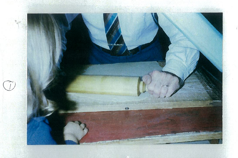 - Next, roll out your homemade pasta dough nice and thinly. Here’s Alfred’s. And the back of my head. Hello three year-old head! (I look so blond).
